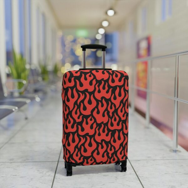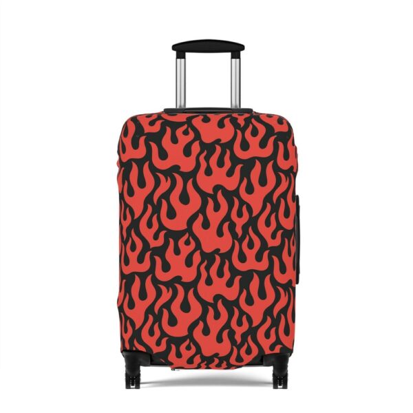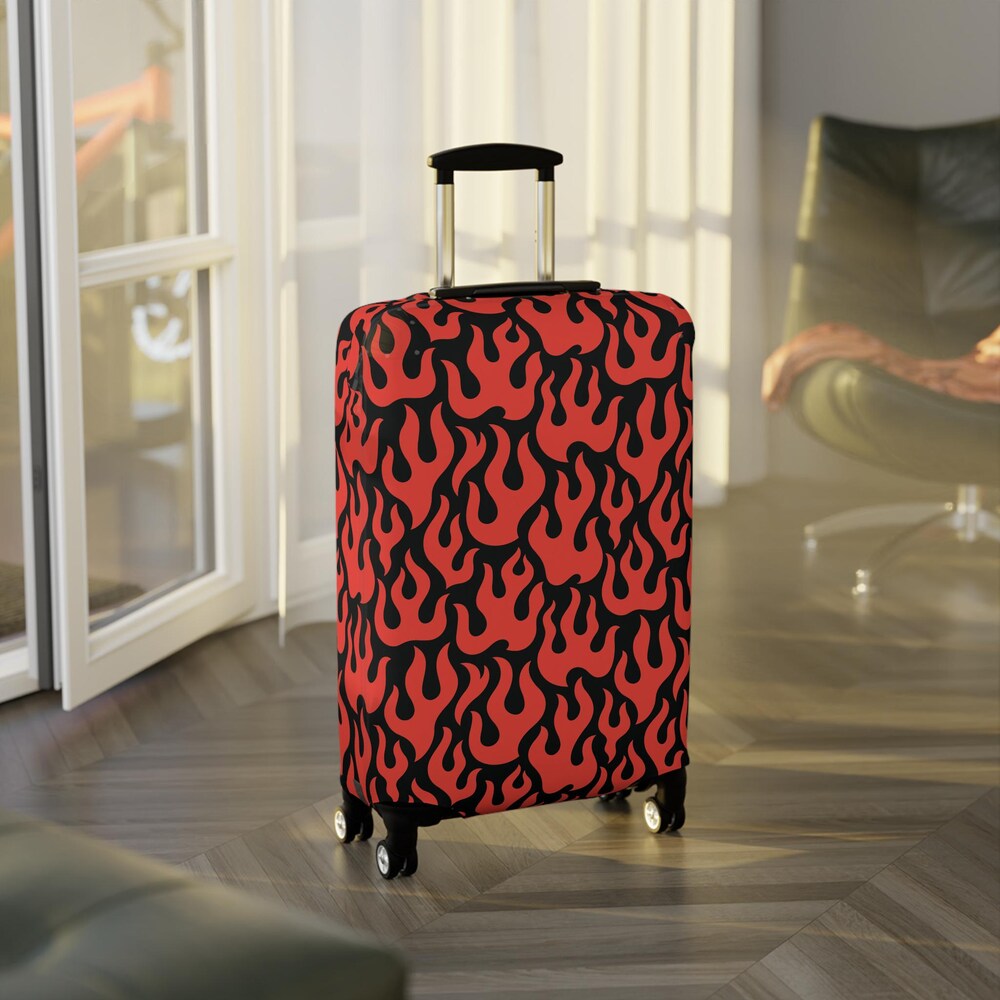 Vibrant Red Fire on Black Background Luggage Cover, Travel Suitcase Protector, Gift for Travelers, Protective Baggage